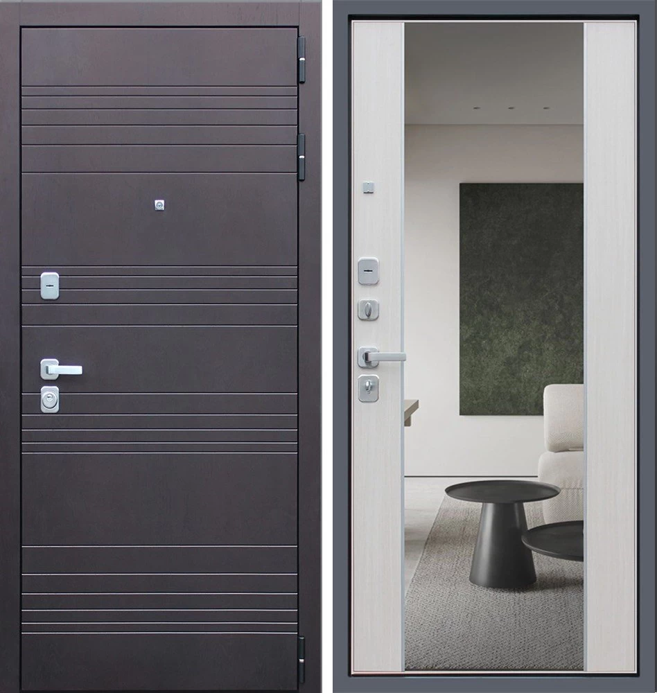 Надежная входная Дверь Дуэт с зеркалом премиум класса по цене 49 350 руб. Большая толщина стали защитит от проникновения в ваш дом, квартиру или коттедж. Используется очень качественная фурнитура: замки, цилиндры, ручки, защелки. Покрытие и отделка двери изготовлено под внимательным контролем производителя. Дверь имеет долгий срок службы и гарантию.