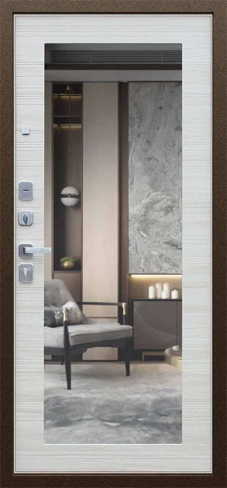 Надежная входная Дверь Спартак с зеркалом Акация Светлая Поперечная премиум класса по цене 38 600 руб. Большая толщина стали защитит от проникновения в ваш дом, квартиру или коттедж. Используется очень качественная фурнитура: замки, цилиндры, ручки, защелки. Покрытие и отделка двери изготовлено под внимательным контролем производителя. Дверь имеет долгий срок службы и гарантию.