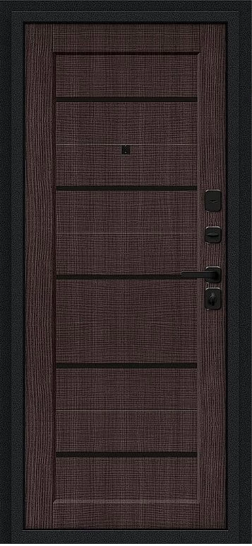 Надежная входная Дверь Браво Борн/SBlack Букле черное/Wenge Melinga премиум класса по цене 33 600 руб. Большая толщина стали защитит от проникновения в ваш дом, квартиру или коттедж. Используется очень качественная фурнитура: замки, цилиндры, ручки, защелки. Покрытие и отделка двери изготовлено под внимательным контролем производителя. Дверь имеет долгий срок службы и гарантию.