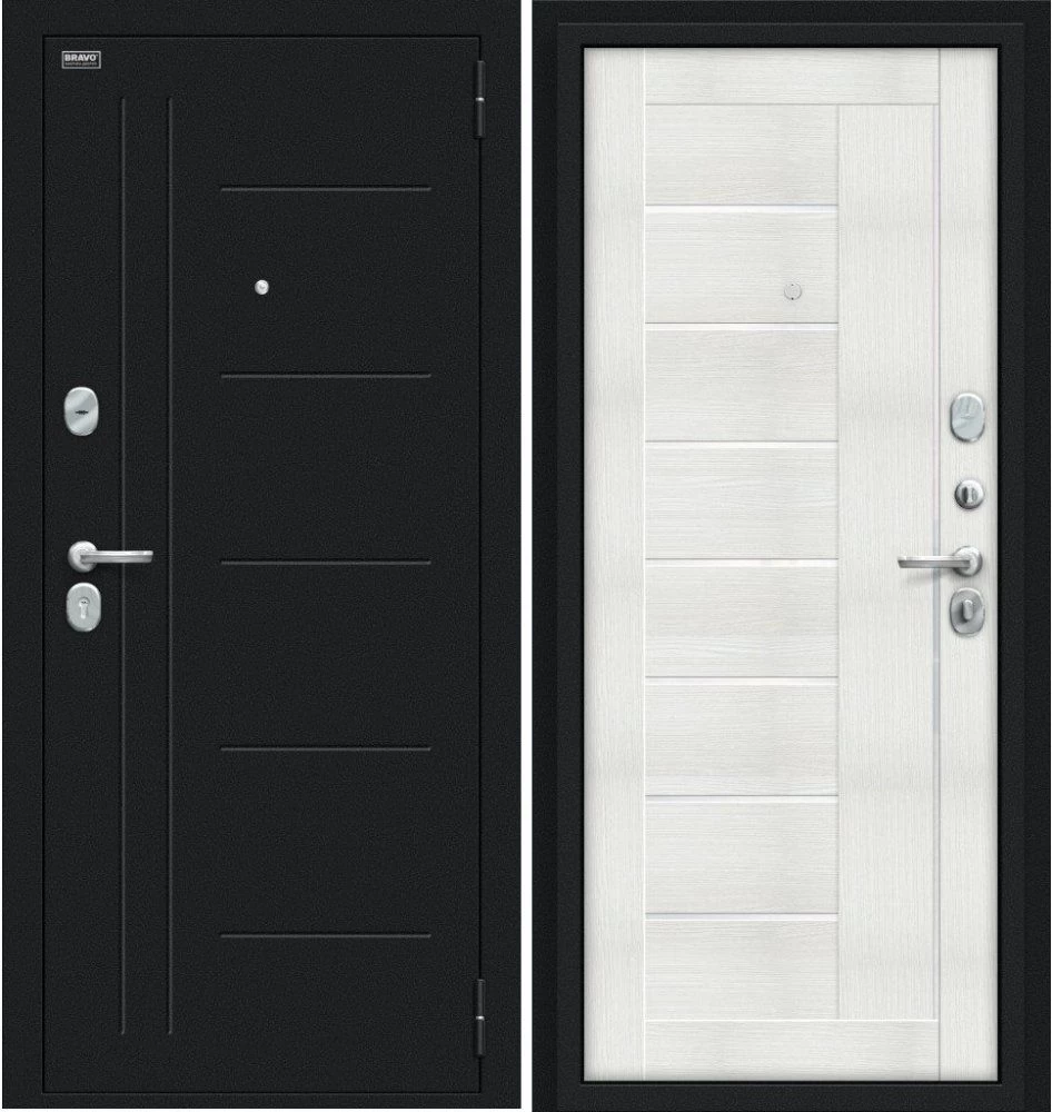Надежная входная Дверь Браво Проф Букле черное/Bianco Veralinga премиум класса по цене 35 050 руб. Большая толщина стали защитит от проникновения в ваш дом, квартиру или коттедж. Используется очень качественная фурнитура: замки, цилиндры, ручки, защелки. Покрытие и отделка двери изготовлено под внимательным контролем производителя. Дверь имеет долгий срок службы и гарантию.