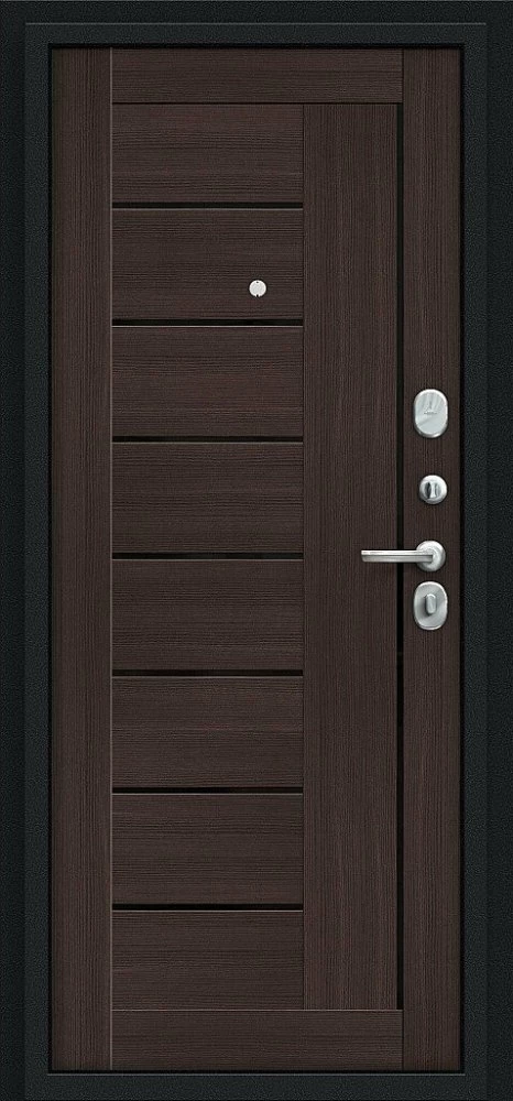 Надежная входная Дверь Браво Проф Букле черное/Wenge Veralinga премиум класса по цене 35 050 руб. Большая толщина стали защитит от проникновения в ваш дом, квартиру или коттедж. Используется очень качественная фурнитура: замки, цилиндры, ручки, защелки. Покрытие и отделка двери изготовлено под внимательным контролем производителя. Дверь имеет долгий срок службы и гарантию.