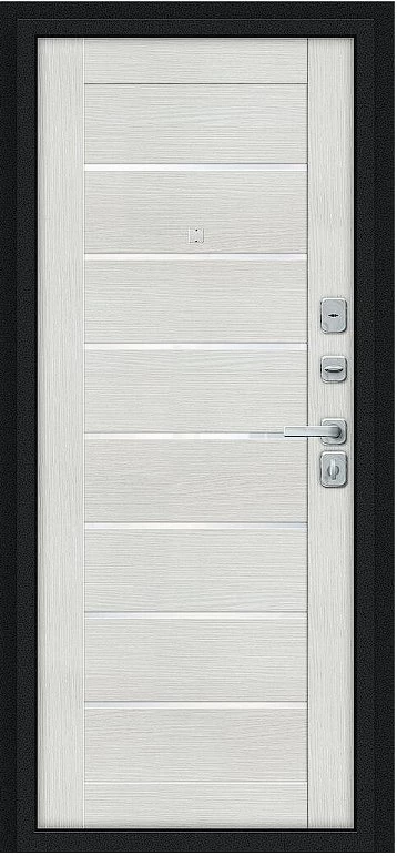 Дверь Браво Техно/BChrome Букле черное/Bianco Melinga - недорогая эконом класса по цене 6 600 руб., отлично подходит для временной установки в квартиру под сдачу, строительство, ремонт. Не смотря стоимость, модель хорошего качества.