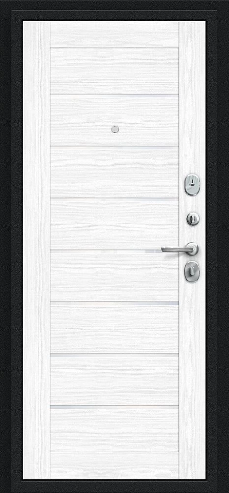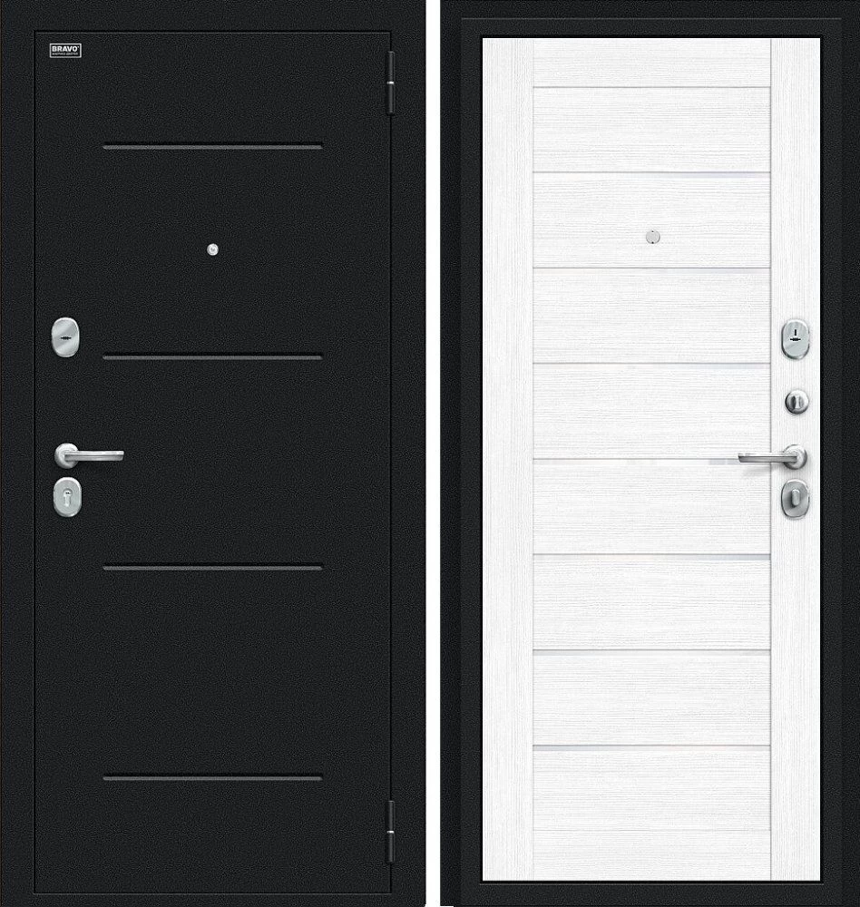 Надежная входная Дверь Браво Техно Букле черное/Snow Melinga премиум класса по цене 33 450 руб. Большая толщина стали защитит от проникновения в ваш дом, квартиру или коттедж. Используется очень качественная фурнитура: замки, цилиндры, ручки, защелки. Покрытие и отделка двери изготовлено под внимательным контролем производителя. Дверь имеет долгий срок службы и гарантию.