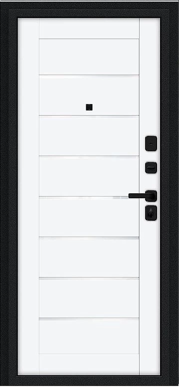 Надежная входная Дверь Браво Техно/SBlack Букле черное/White Silk премиум класса по цене 36 500 руб. Большая толщина стали защитит от проникновения в ваш дом, квартиру или коттедж. Используется очень качественная фурнитура: замки, цилиндры, ручки, защелки. Покрытие и отделка двери изготовлено под внимательным контролем производителя. Дверь имеет долгий срок службы и гарантию.