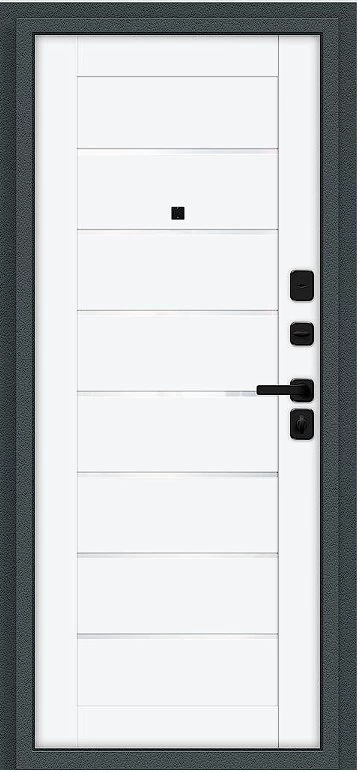 Надежная входная Дверь Браво Техно/SBlack Старк антрацит/White Silk премиум класса по цене 38 250 руб. Большая толщина стали защитит от проникновения в ваш дом, квартиру или коттедж. Используется очень качественная фурнитура: замки, цилиндры, ручки, защелки. Покрытие и отделка двери изготовлено под внимательным контролем производителя. Дверь имеет долгий срок службы и гарантию.
