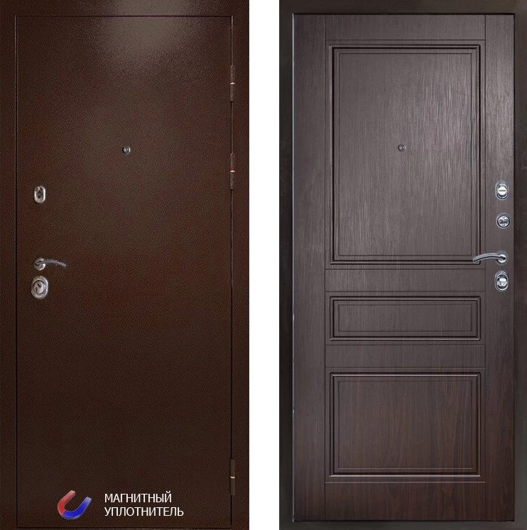 Надежная входная Дверь Термо-Доор ТЕХНО МЕДЬ премиум класса по цене 45 100 руб. Большая толщина стали защитит от проникновения в ваш дом, квартиру или коттедж. Используется очень качественная фурнитура: замки, цилиндры, ручки, защелки. Покрытие и отделка двери изготовлено под внимательным контролем производителя. Дверь имеет долгий срок службы и гарантию.