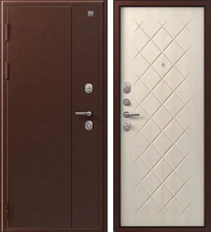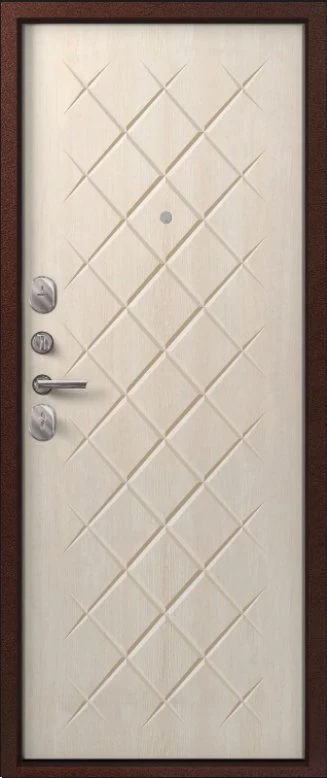 Надежная входная Дверь V-02 медь антик - седой дуб премиум класса по цене 38 950 руб. Большая толщина стали защитит от проникновения в ваш дом, квартиру или коттедж. Используется очень качественная фурнитура: замки, цилиндры, ручки, защелки. Покрытие и отделка двери изготовлено под внимательным контролем производителя. Дверь имеет долгий срок службы и гарантию.