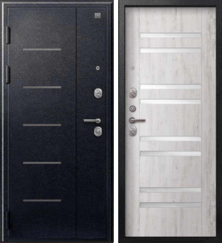 Надежная входная Дверь V-07 Черный муар - Дуб пепельный премиум класса по цене 44 100 руб. Большая толщина стали защитит от проникновения в ваш дом, квартиру или коттедж. Используется очень качественная фурнитура: замки, цилиндры, ручки, защелки. Покрытие и отделка двери изготовлено под внимательным контролем производителя. Дверь имеет долгий срок службы и гарантию.