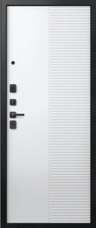 Надежная входная Дверь V-18 Черный муар + Кашемир графит - Кашемир Белый премиум класса по цене 48 850 руб. Большая толщина стали защитит от проникновения в ваш дом, квартиру или коттедж. Используется очень качественная фурнитура: замки, цилиндры, ручки, защелки. Покрытие и отделка двери изготовлено под внимательным контролем производителя. Дверь имеет долгий срок службы и гарантию.